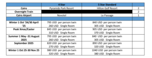 SERVICES: To make it easier for you in Egypt in Style Tours has recommended a kitty for service staff, baggage and boat